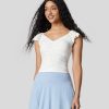 Halara נשים טופ קז’ואל קצוץ עם שרוולים קצרים עם שרוולים קצרים עם צווארון V XX0PF1944 הַלבָּשָׁה לבן