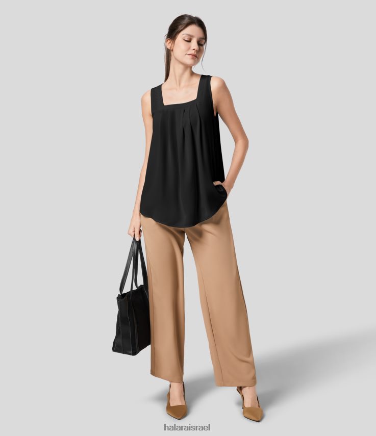 Halara נשים גופיית עבודה משופשפת בצוואר מרובע XX0PF1718 בגדים פעילים שָׁחוֹר