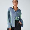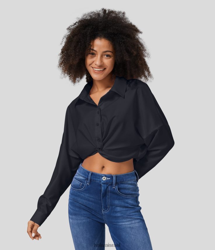 Halara נשים חולצה קז’ואלית מעוותת עם כפתור צווארון עם שרוולים ארוכים XX0PF1651 הַלבָּשָׁה וולקן