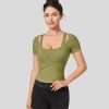 Halara נשים חולצת ספורט יוגה דקיקה עם שרוולים קצרים עם שרוול קצר מכפלת מעוקלת XX0PF1807 בגדים פעילים מְקוֹרִי