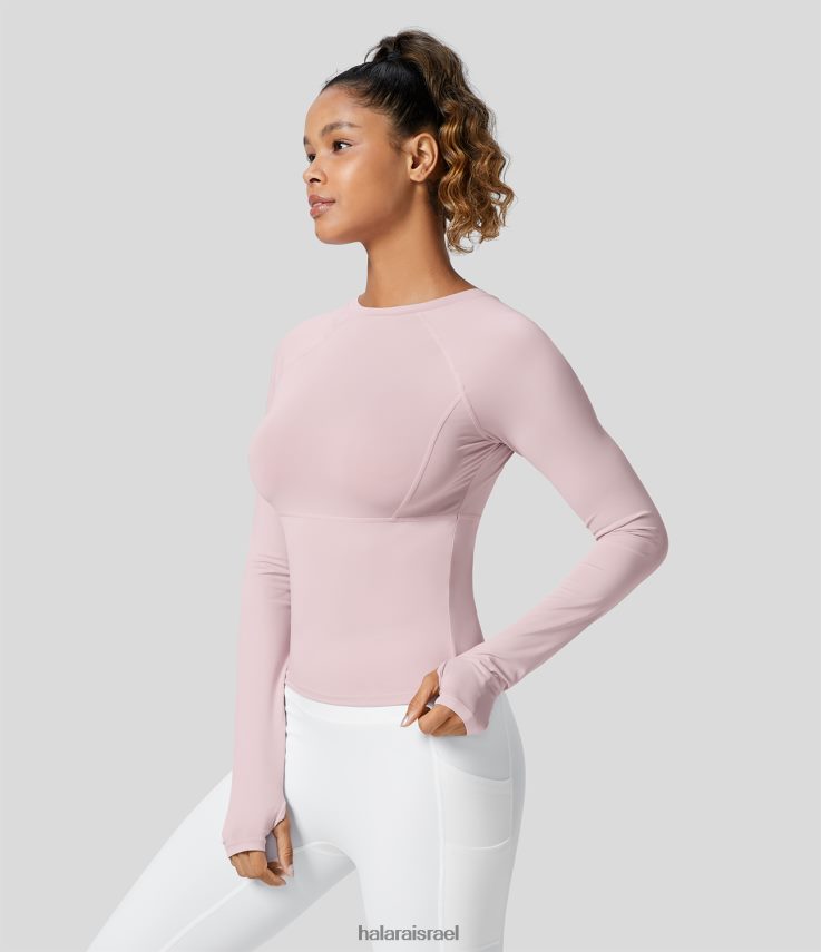 Halara נשים חולצת ספורט יוגה עם חור אגודל מוצק XX0PF1792 בגדים פעילים לילך חיוור