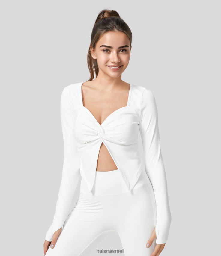 Halara נשים חולצת ספורט יוגה קצוצה בקטיפה מעוותת softlyzero XX0PF1933 בגדים פעילים לבן