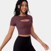 Halara נשים חור אגודל קטיפה softlyzero 2-in-1 2-in-1 יוגה קצוץ עם שרוול ארוך XX0PF1795 בגדים פעילים שָׁחוֹר