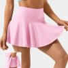Halara נשים חצאית מיני טניס צדדית 2 ב-1 עם סריג מצולע בגזרת מותן גבוהה XX0PF516 בגדים פעילים ורד אובך ורוד
