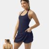 Halara נשים חצי רוכסן חור אגודל מפוצל כיס 2 חלקים שמלת טניס אקטיבית XX0PF940 בגדים פעילים ים טורקי