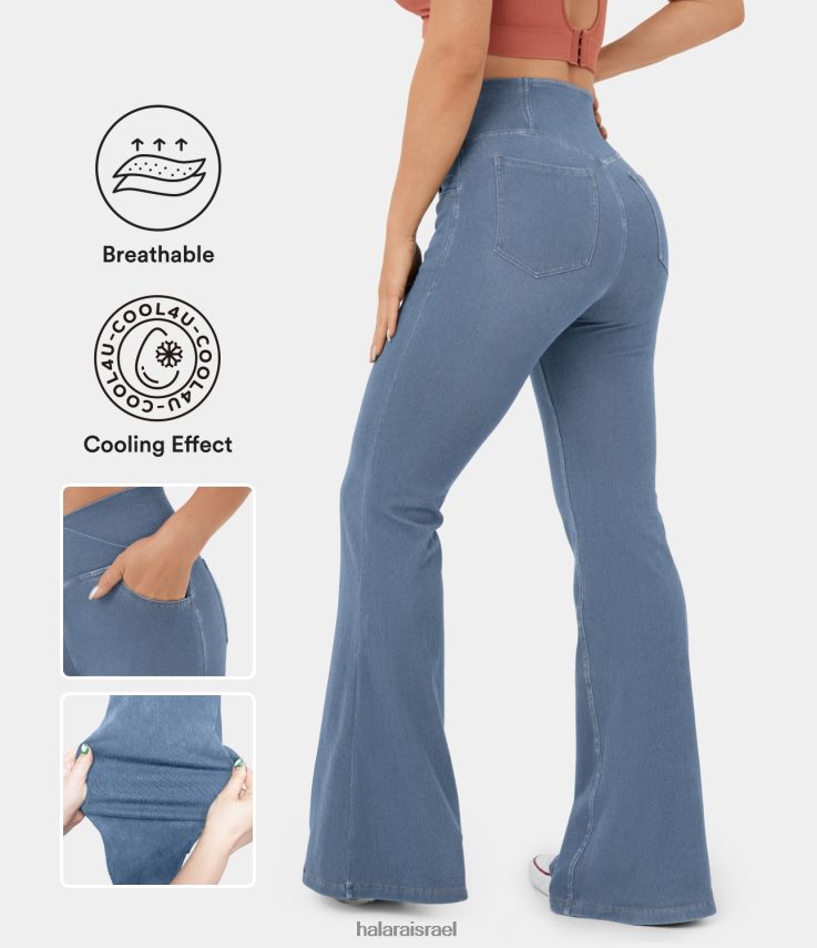 Halara נשים כיס מוצלב מותן קסום מגניב שטוף סריג נמתח קז’ואל ג’ינס סופר מתלקח XX0PF104 הַלבָּשָׁה ג’ינס כחול פסטל