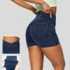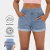 Halara נשים כיס מוצלב קסם מגניב מגע נושם שטוף ג’ינס סריג נמתח קז’ואל קצר 7 אינץ’ XX0PF1293 הַלבָּשָׁה ג’ינס ציאן