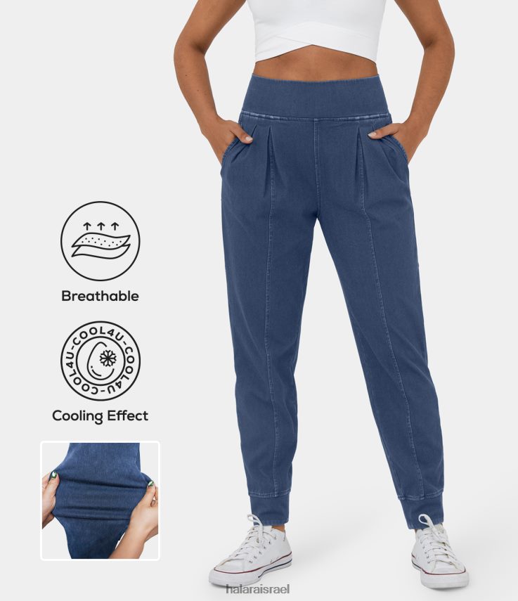 Halara נשים כיס צד מותן קסום משולב מגע מגניב נושם שטף ג’ינס קז’ואל סריג נמתח XX0PF48 הַלבָּשָׁה כחול ג’ינס אינדיגו מכובס