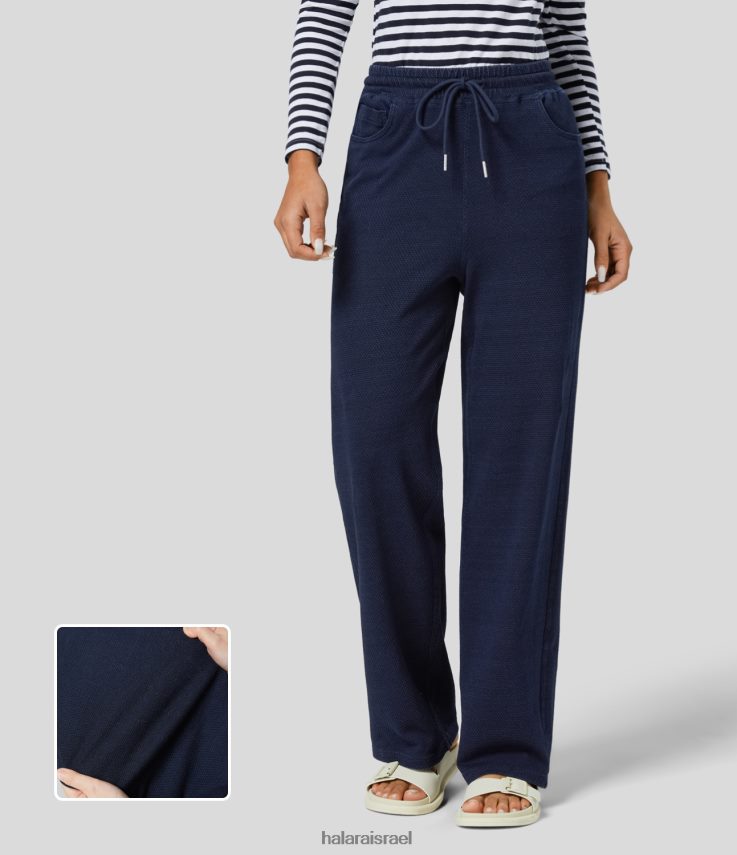 Halara נשים כיס צד עם שרוך מותן קסום עם רגל ישרה ג’ינס קז’ואל סריג נמתח XX0PF1365 הַלבָּשָׁה ג’ינס וופל כחול