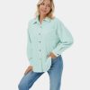 Halara נשים כפתור כיס עם דש כתף עם צווארון קצוץ קדמי מעוקל ז’קט קז’ואל אוברסייז מוצק XX0PF2054 הַלבָּשָׁה שָׁחוֹר