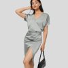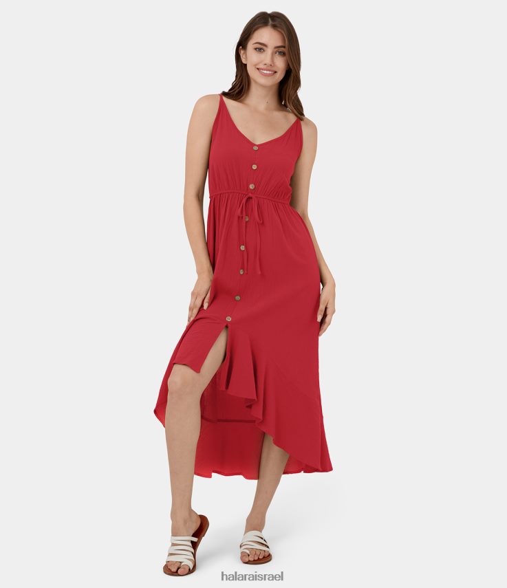 Halara נשים להחליק רצועה מתכווננת ללא גב כפתור שרוך א-סימטרי שמלת כותנה קז’ואל מידי אסימטרית XX0PF1173 הַלבָּשָׁה סרט אדום