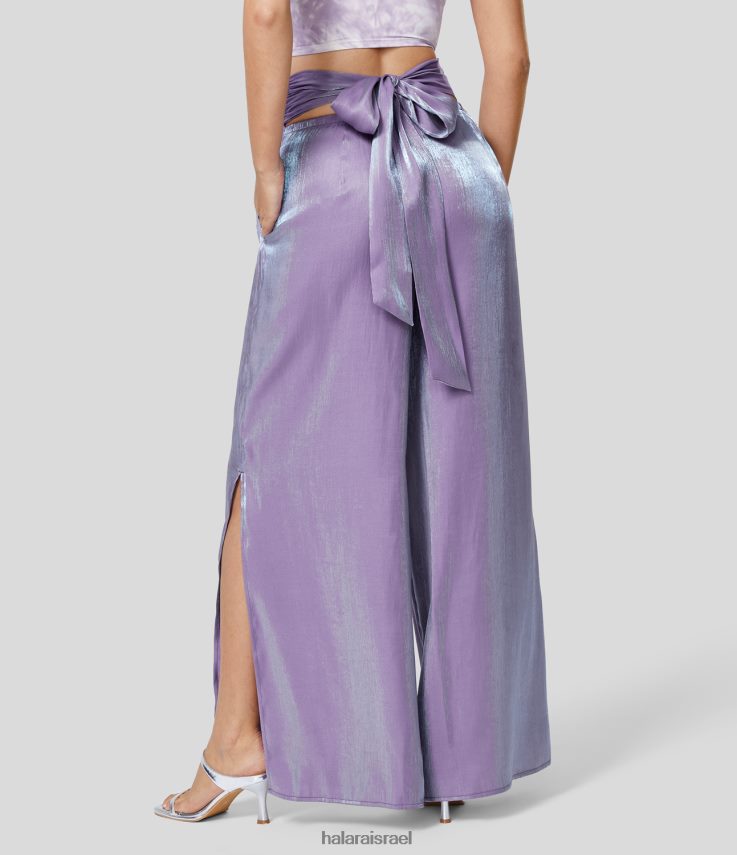 Halara נשים מכנסיים מזדמנים עם רוכסן בלתי נראה עם מותן גבוה גב גב כיס צד מפוצל ברק רחב XX0PF152 הַלבָּשָׁה רַפּסוֹדִיָה
