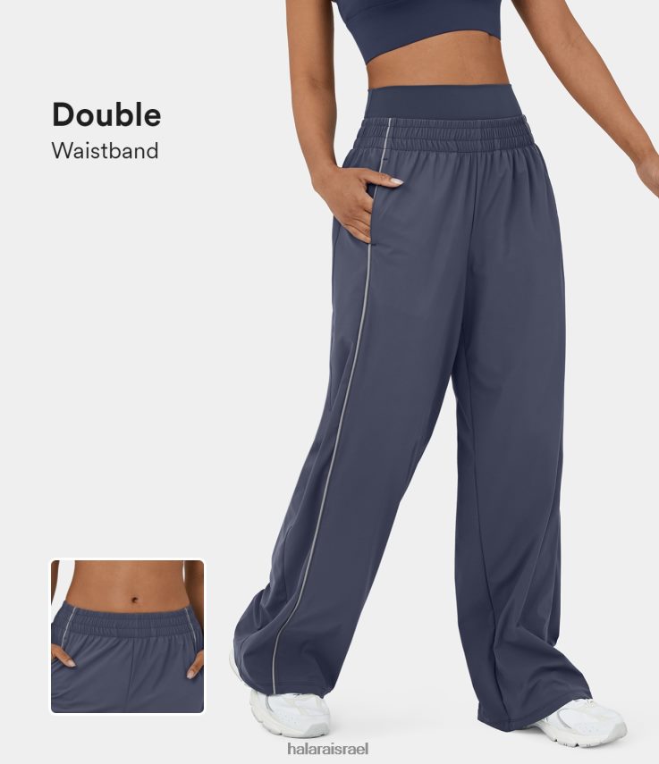 Halara נשים מכנסיים קז’ואלים עם רגליים רחבות עם חגורת מותן כפולה בכיס צד ניגודיות XX0PF171 בגדים פעילים צללית כחולה