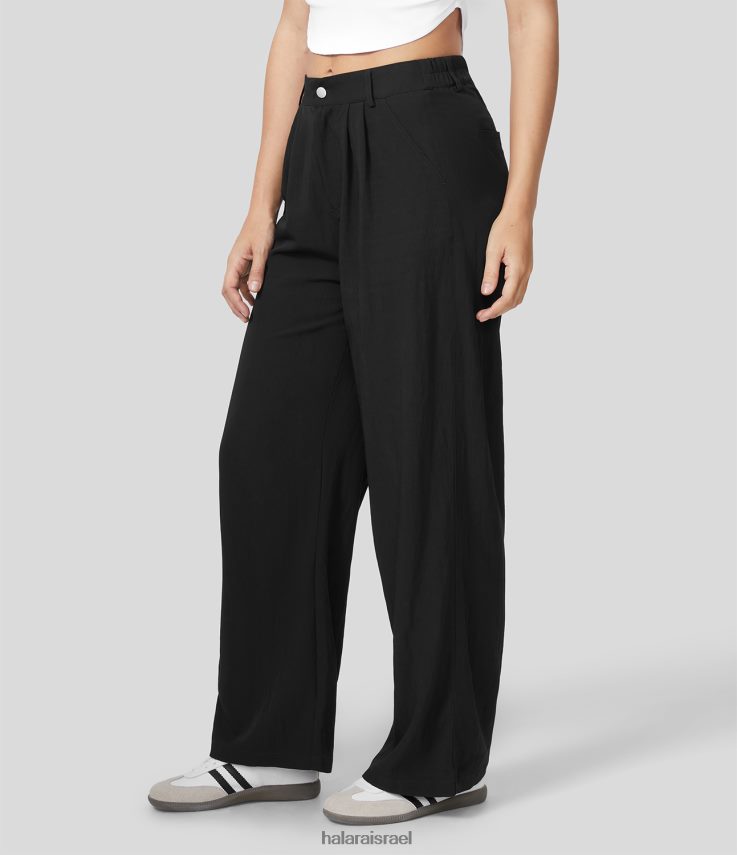 Halara נשים מכנסי כותנה קז’ואל מזדמנים בכיס צד עם רוכסן עלייה בינונית XX0PF220 הַלבָּשָׁה שָׁחוֹר