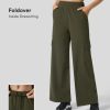 Halara נשים מכנסי קז’ואל קטיפה עם מותן גבוה עם כיס צד משוכפך XX0PF224 הַלבָּשָׁה שָׁחוֹר