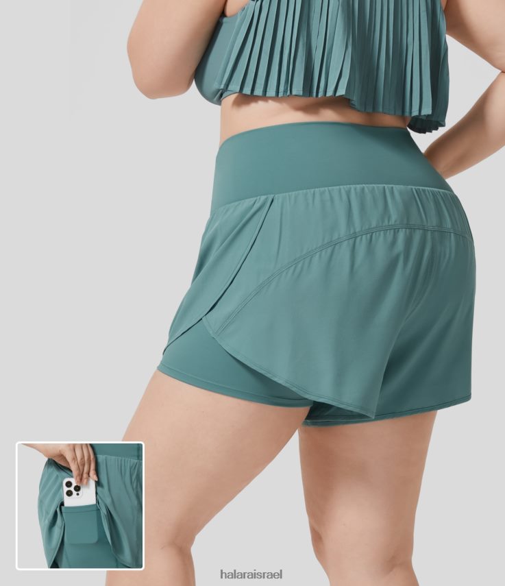 Halara נשים מכפלת מעוקלת סופר-גבוהה בצורת כיס צד 2 ב-1 מהיר יבש יוגה מכנסיים קצרים בגודל 4 אינץ’ XX0PF2131 תחתונים כחול מינרלי