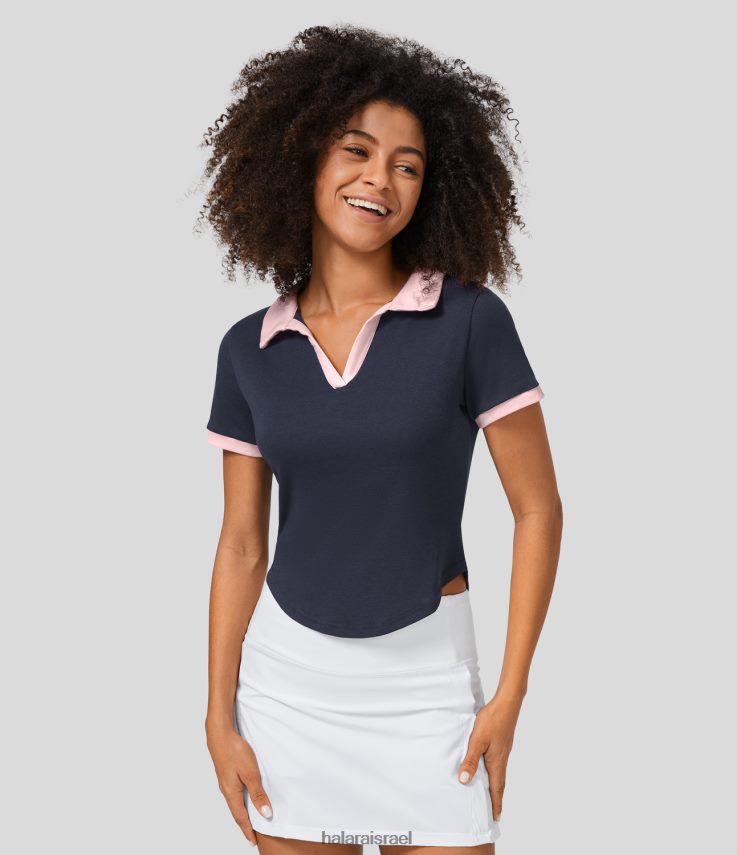Halara נשים צווארון פולו שרוול קצר צבע בלוק גולף כותנה ספורט טופ XX0PF1832 בגדים פעילים לילה פריזאי
