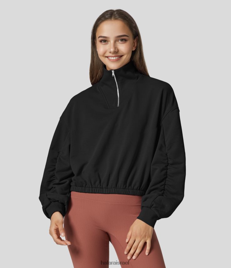 Halara נשים צוואר משפך חצי רוכסן שרוולים ארוכים טיולים כותנה סווטשירט ספורט XX0PF1990 בגדים פעילים כוכב שוקע שחור