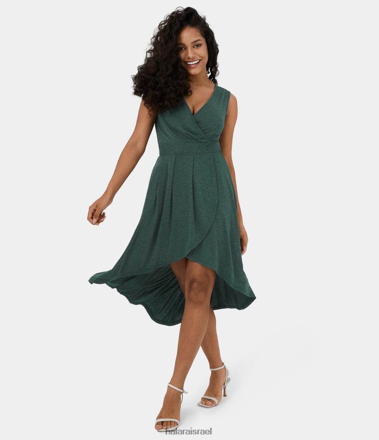 Halara נשים צוואר V עמוק משופשף ללא שרוולים גבוה נמוך מוצלב מכפלת זורמת מידי קז’ואל XX0PF1135 הַלבָּשָׁה חוט פרחוני ירוק כהה