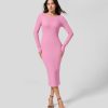 Halara נשים צלעות מוצלבות בגזרת שרוולים ארוכים מכפלת מפוצלת bodycon שמלת מסיבות מידי XX0PF1123 הַלבָּשָׁה חיוך ארגמן