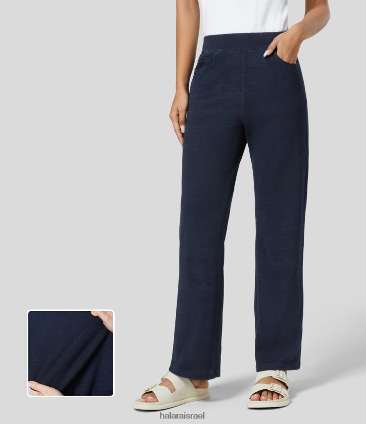 Halara נשים קסם באמצע העלייה כיסים מרובים סריג נמתח קז’ואל ג’ינס קז’ואל XX0PF384 הַלבָּשָׁה ג’ינס וופל כחול