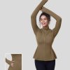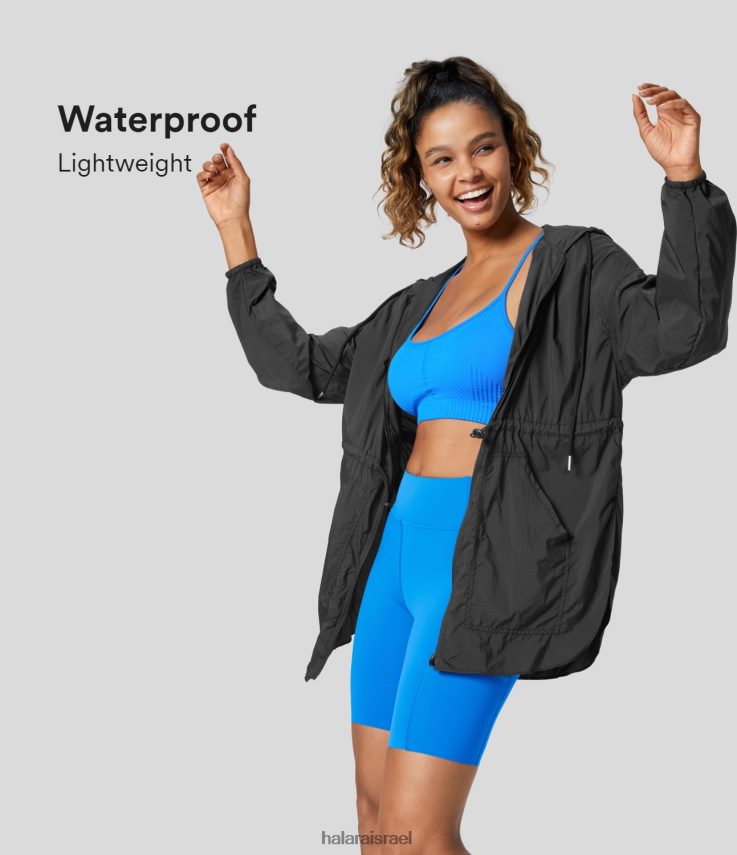 Halara נשים קפוצ’ון קל משקל עמיד למים מתכוונן שרוך מותן כיס מעוקל מכפלת רוכסן מעיל טיולים XX0PF2031 בגדים פעילים שָׁחוֹר