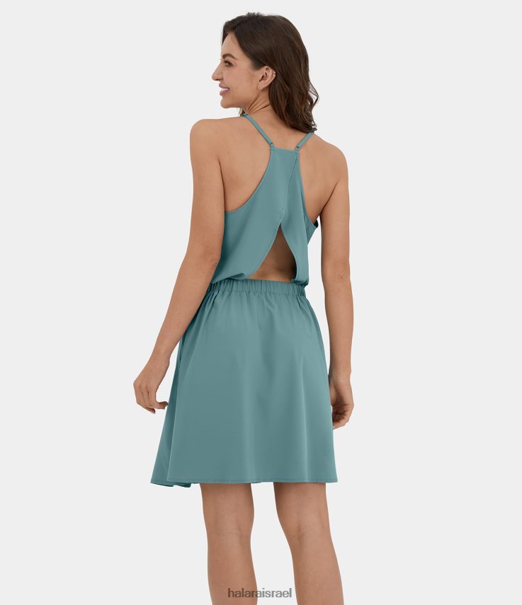 Halara נשים רצועה מתכווננת בריזה ללא גב חתוכה בכיס צד קפלים מיני שמלת קז’ואל מהירה יבשה XX0PF971 הַלבָּשָׁה כחול מינרלי