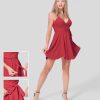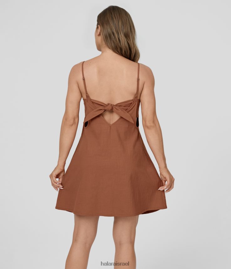 Halara נשים רצועה מתכווננת צוואר V ללא גב קשר קשירה לאחור קשירה החוצה זרימה שמלת כותנה מיני קז’ואל XX0PF1056 הַלבָּשָׁה אדום חלודה