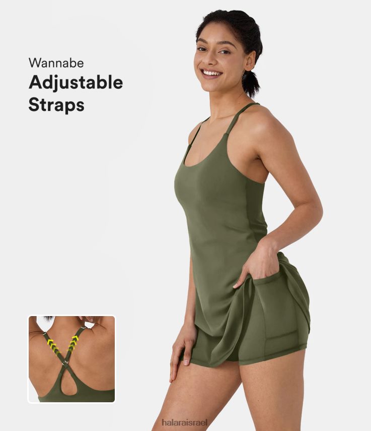 Halara נשים רצועות קטיפה מתכווננות softlyzero ללא גב שמלת יוגה אקטיבית 2 ב-1 כיס מתלקח XX0PF821 בגדים פעילים דשא אפור ירוק