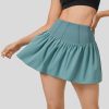 Halara נשים רצועת מותניים אלסטית בעליה בינונית אסימטרית מכפלת סלסולים מוצקה מיני סאטן דמוית מסיבה XX0PF690 הַלבָּשָׁה שָׁחוֹר