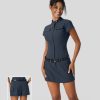 Halara נשים חצי רוכסן חור אגודל מפוצל כיס 2 חלקים שמלת טניס אקטיבית XX0PF776 בגדים פעילים שָׁחוֹר
