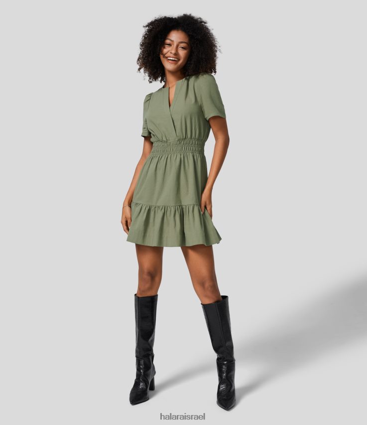 Halara נשים שמלת כותנה מזדמנת עם שרוולים נפוחים עם צווארון V XX0PF984 הַלבָּשָׁה לודן ירוק
