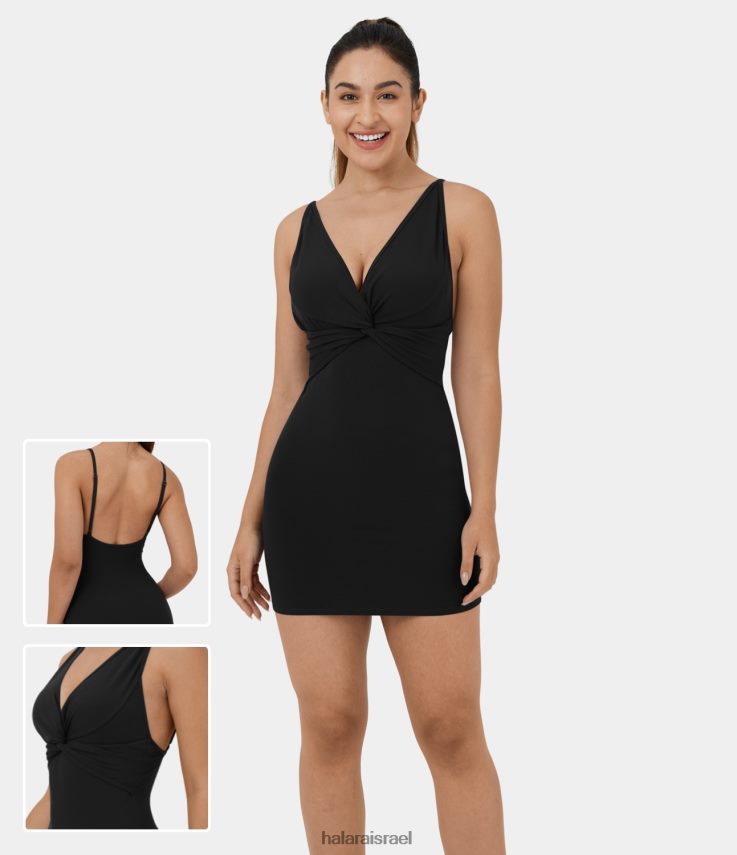 Halara נשים שמלת מיני קז’ואל מעוותת עם צווארון V עמוק ללא גב ללא גב XX0PF1037 הַלבָּשָׁה שָׁחוֹר