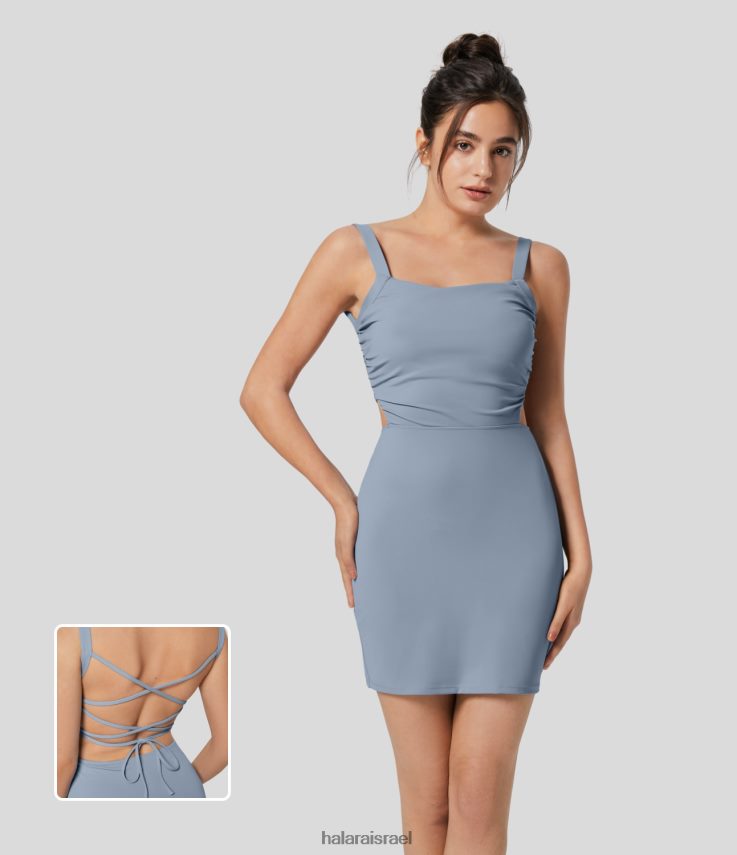 Halara נשים שמלת מיני קז’ואל קז’ואל נטולת גב מחוספסת XX0PF1024 הַלבָּשָׁה כחול פתית שלג