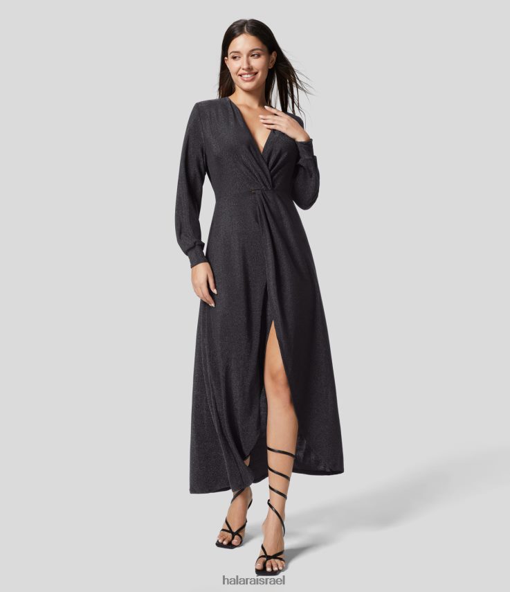 Halara נשים שמלת מסיבות מתכתית עם צווארון V עמוק משופשף מכפלת אסימטרית XX0PF1222 הַלבָּשָׁה כחול נוצץ שחור