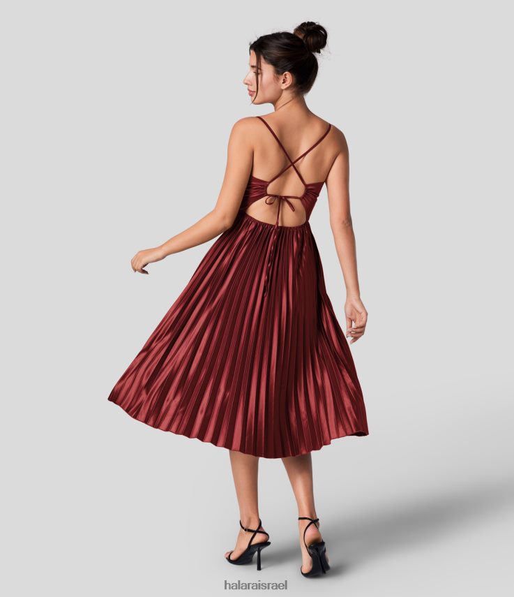 Halara נשים שמלת מסיבת מידי קפלים עם צווארון V ללא גב XX0PF1158 הַלבָּשָׁה מְקוֹרִי