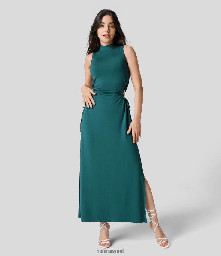 Halara נשים שמלת מקסי קז’ואל מפוצלת עם צווארון מדומה ללא שרוולים XX0PF1192 הַלבָּשָׁה Chesapeake Bay