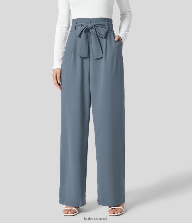 Halara נשים שקית נייר מכנסי חליפת עבודה עם מותן גבוה וחגורה בכיס צד רחב XX0PF127 הַלבָּשָׁה כחול אפור ים עמוק