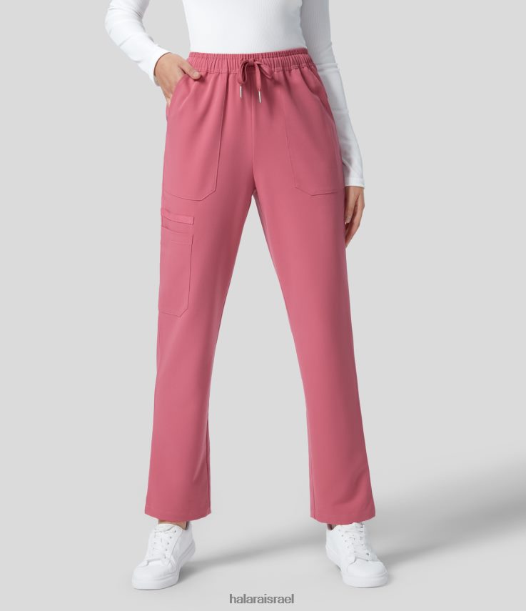 Halara נשים שרוך בעלות אמצע כיסים מפוצלים מכנסי עבודה עם רגל ישרה XX0PF429 הַלבָּשָׁה ורד המדבר