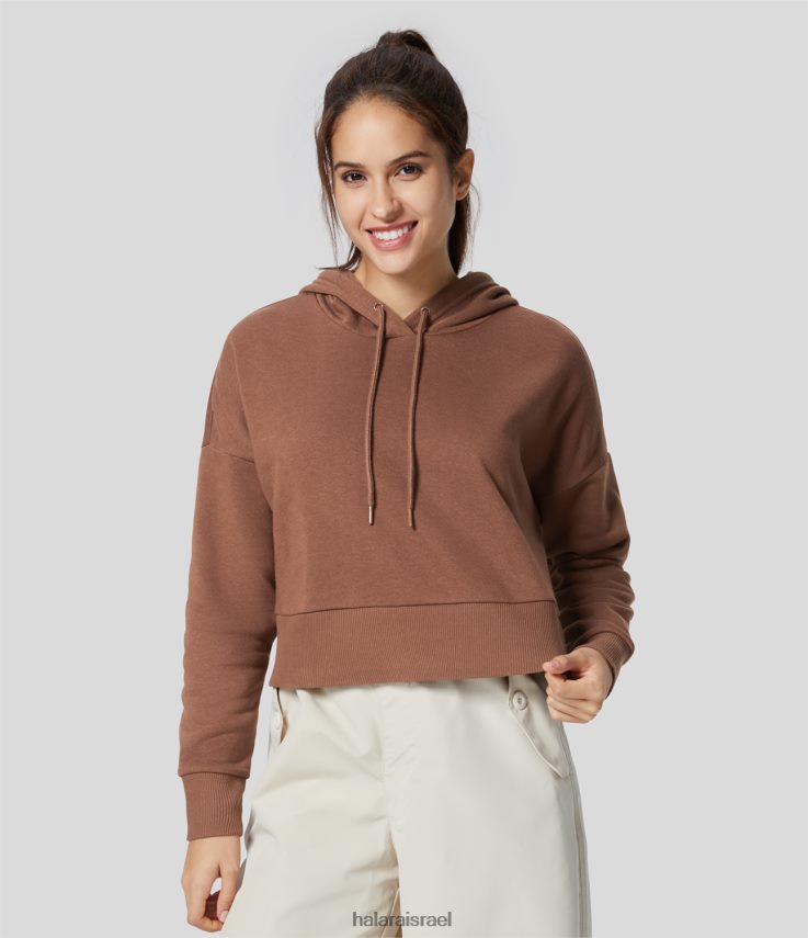 Halara נשים שרוך קפוצ’ון בייסיק קז’ואל סווטשירט כותנה XX0PF1986 הַלבָּשָׁה חוּם אֲדַמדַם