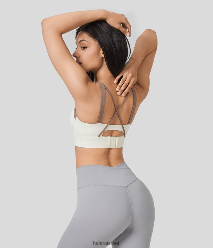 Halara נשים תמיכה בינונית חזיית ספורט ריצה עם אבזם מתכוונן ללא גב XX0PF1610 בגדים פעילים אלון לבן כשלג