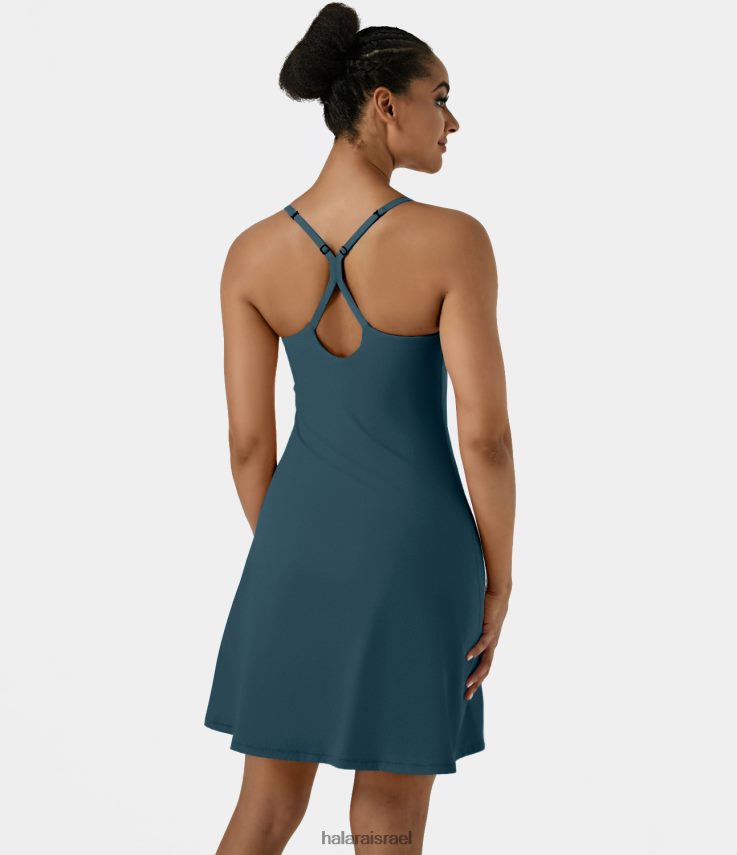 Halara נשים softlyzero אוורירית חסרת גב חתוכה רצועה מתכווננת כיס 2 ב-1 כיס מגניב מגע ארוך יותר שמלת יוגה אקטיבית XX0PF795 בגדים פעילים דיו ירוק