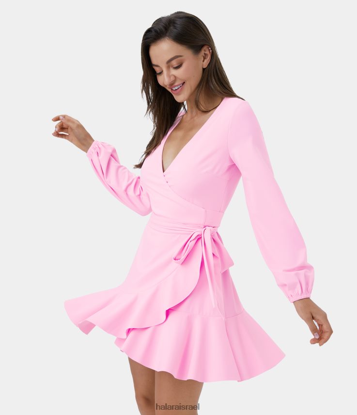 Halara נשים softlyzero אוורירית עמוקה צווארון V עטוף קשירה עם שולי סלסולים שמלת קז’ואל מגניבה מגע מגניב XX0PF1064 הַלבָּשָׁה חוטם
