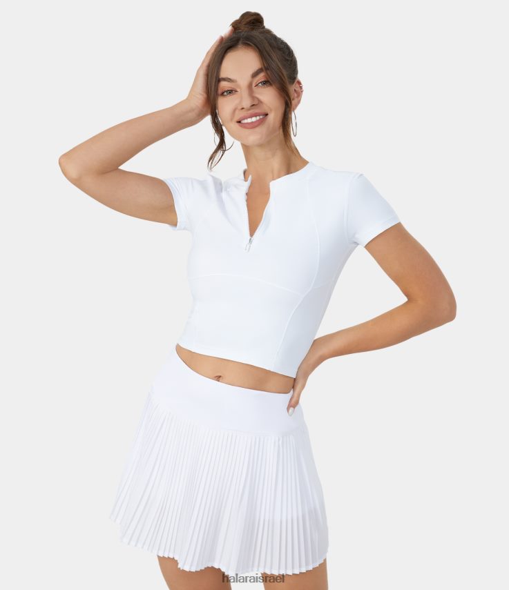 Halara נשים softlyzero אוורירי חצי רוכסן שרוול קצר מגע מגניב קצוץ טופ ספורט גולף XX0PF1813 בגדים פעילים לבן