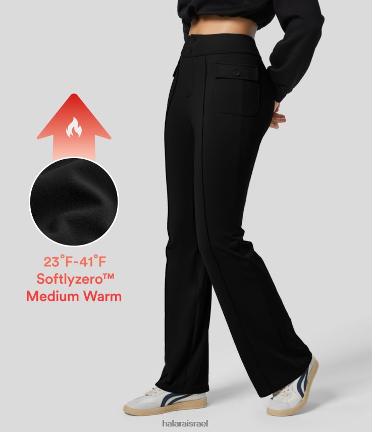 Halara נשים softlyzero פליס עם כפתור מותן גבוה בכיס כיס מתלקח מזדמנים XX0PF272 בגדים פעילים שָׁחוֹר