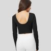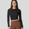 Halara נשים softlyzero צווארון עגול שרוולים ארוכים מכפלת מכפלת טופ יוגה ספורט XX0PF1847 בגדים פעילים שָׁחוֹר