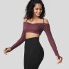 Halara נשים softlyzero צוואר מרובע חור אגודל מחוך רשת קצוץ יוגה ספורט טופ XX0PF1892 בגדים פעילים חום ערמונים