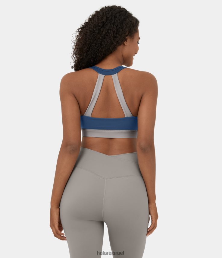 Halara נשים softlyzero קטיפה תמיכה נמוכה ללא גב חזיית ספורט יוגה בצבע בלוק מרובע XX0PF1605 בגדים פעילים טורקיז כהה