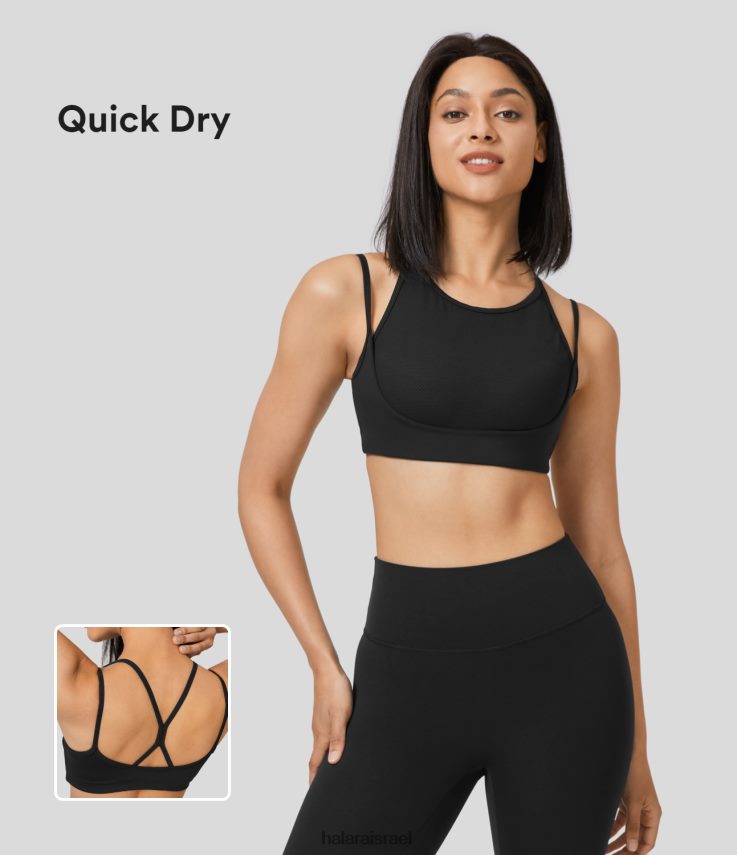 Halara נשים speedwave תמיכה בינונית צוואר עגול ללא גב חזיית ספורט ריצה יבשה מרושת רשת ניגודיות XX0PF1608 בגדים פעילים שָׁחוֹר