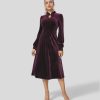 Halara נשים V צווארון עטוף עניבה קדמית שרוול ארוך גבוה קטיפה נמוכה שמלת מידי קז’ואל XX0PF1251 הַלבָּשָׁה שָׁחוֹר